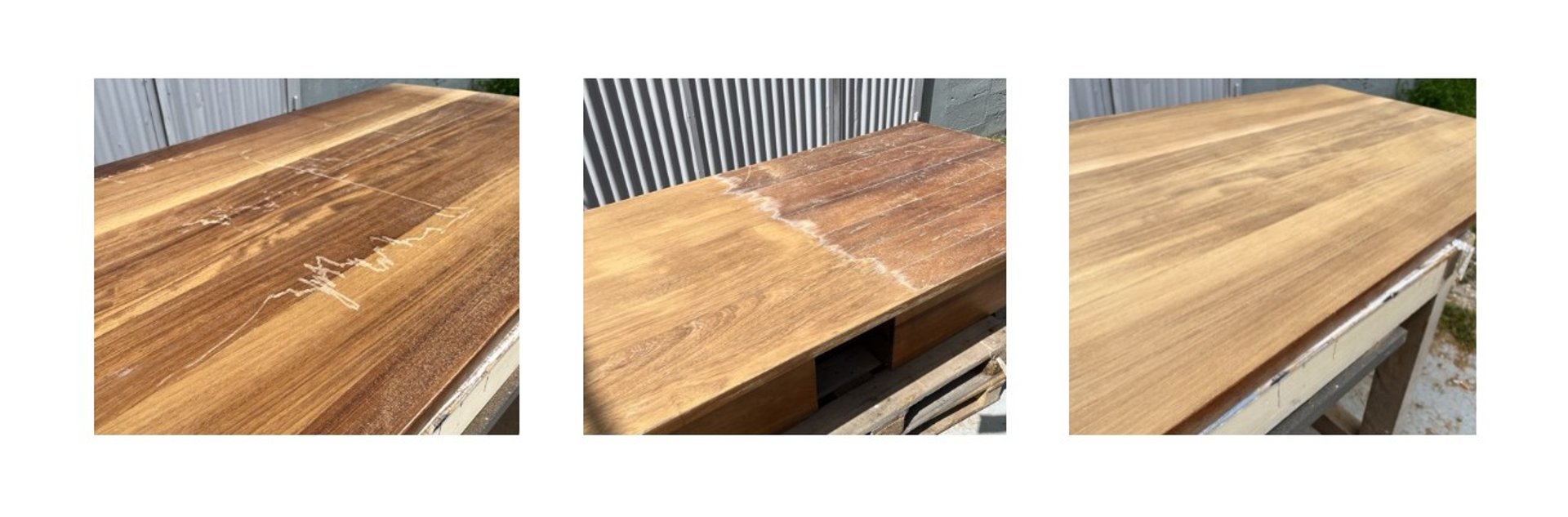 Nous préparons la surface à vernir en ponçant un mobilier brute et en décapant un mobilier de rénovation.
